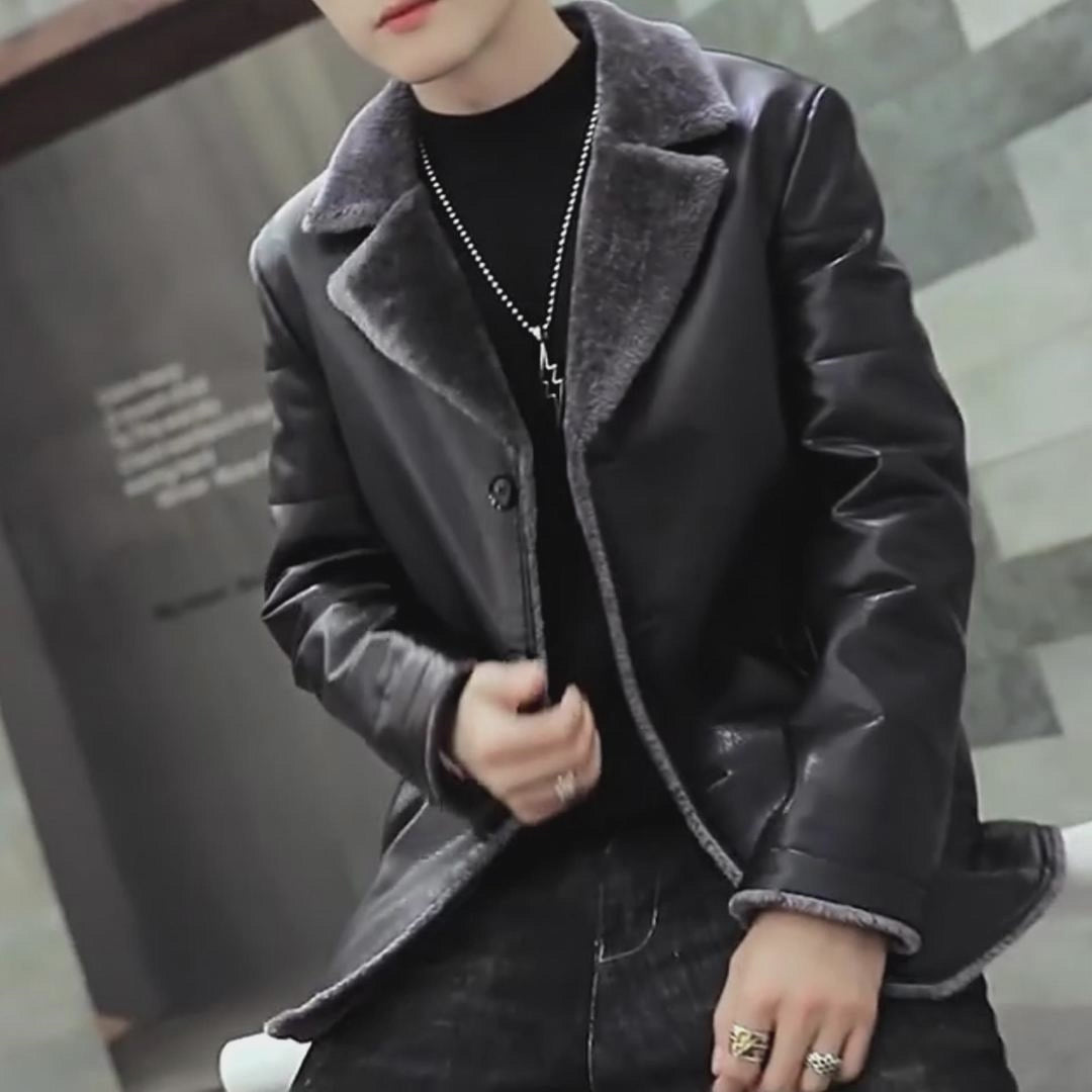 Winter Men’s Leather Jacket – Plush Fleece Lined Long Coat with Lapel Design